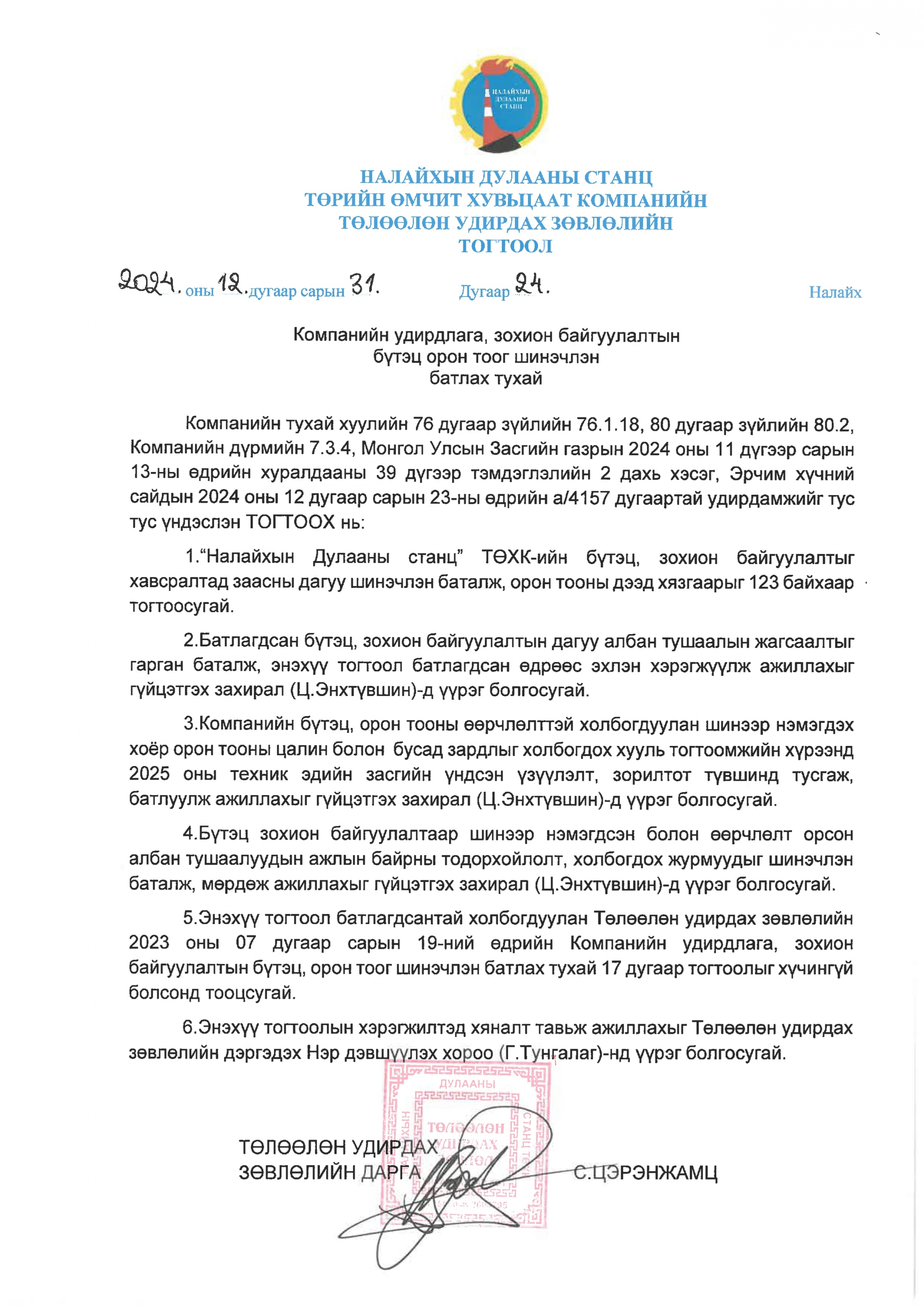 "Налайхын Дулааны станц" ТӨХК ТУЗ-ын дарга, гишүүд