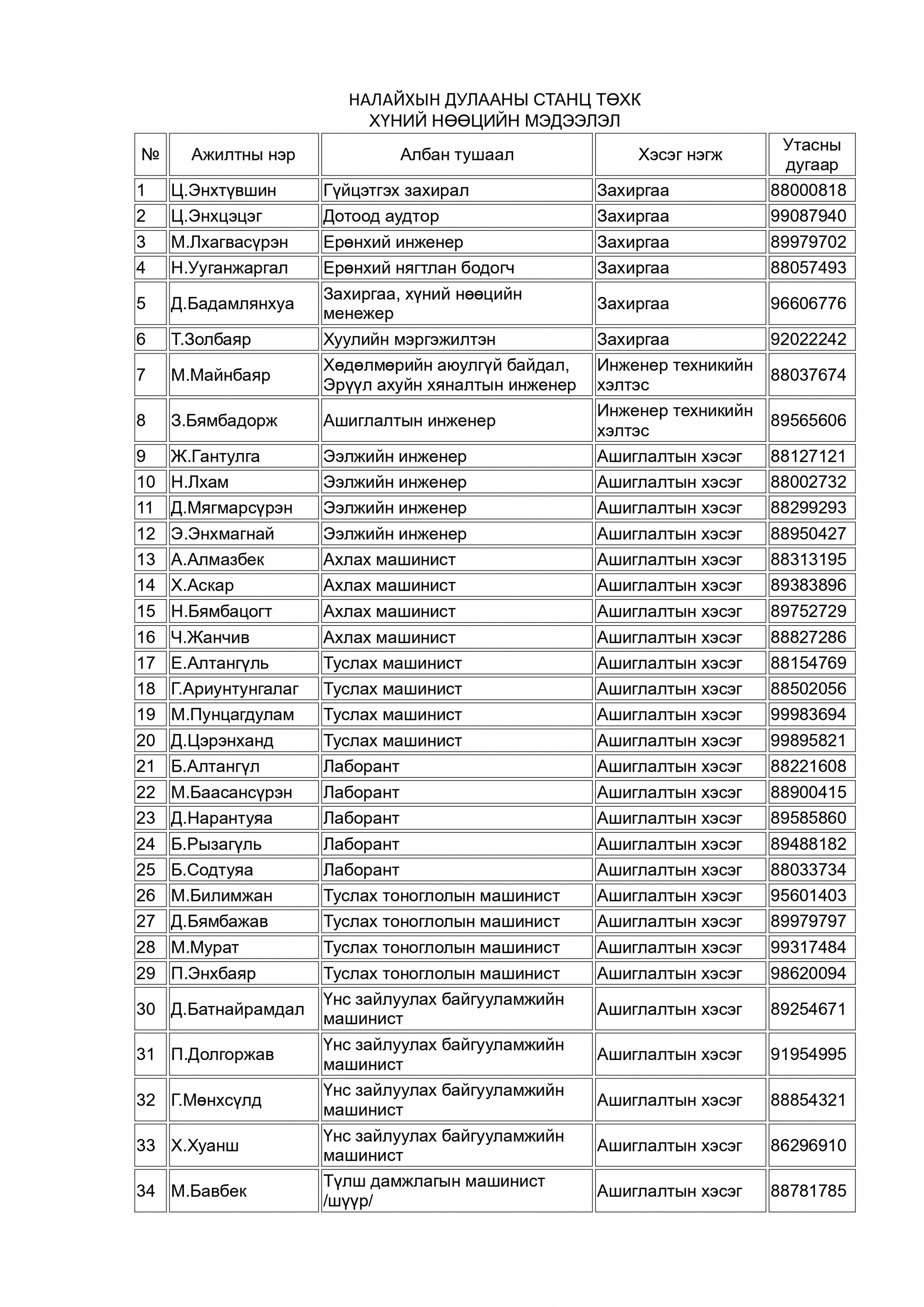 "Налайхын Дулааны станц ТӨХК"-ийн Гүйцэтгэх захирлын цалингийн ил тод байдал.