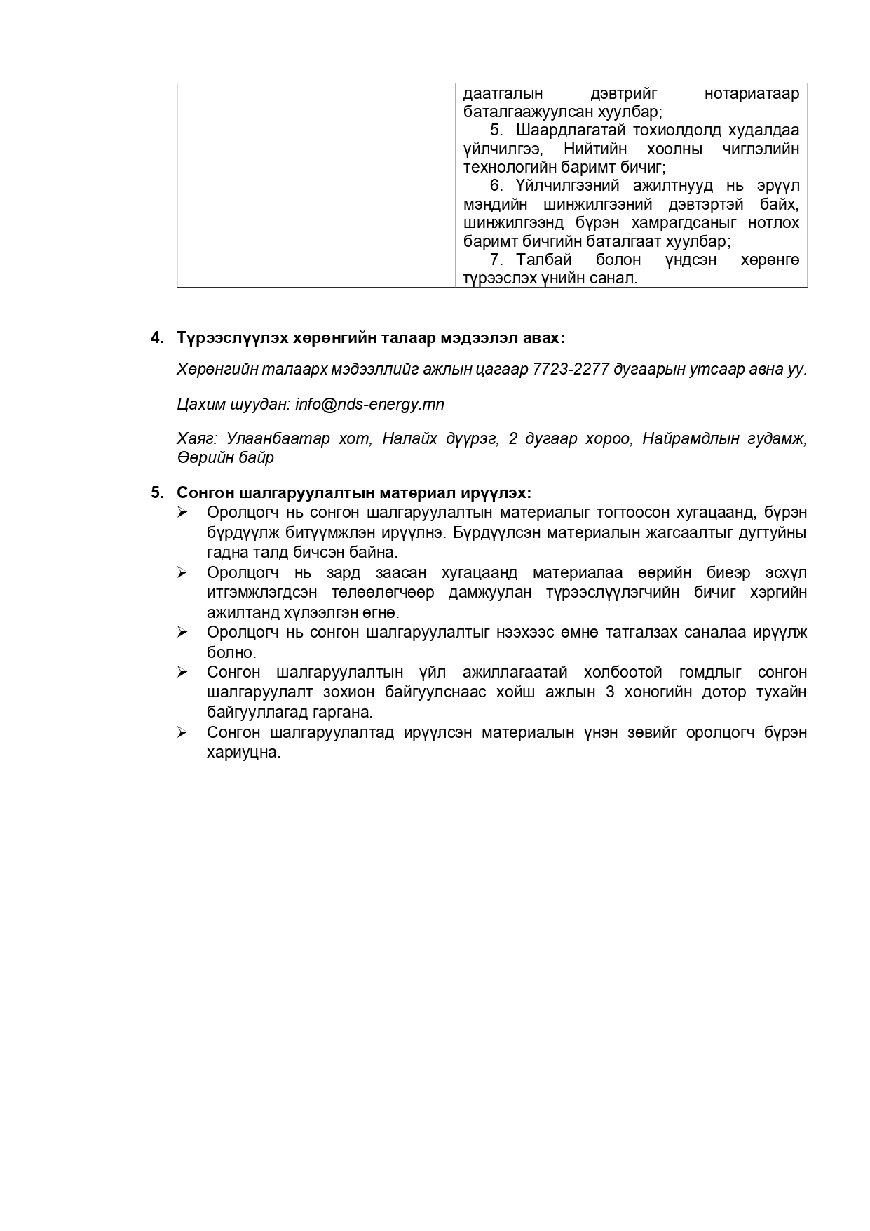 Тусгай зөвшөөрөл авахад бүрдүүлэх материал