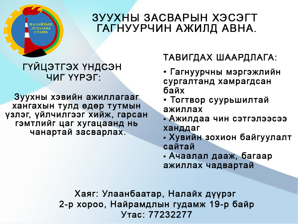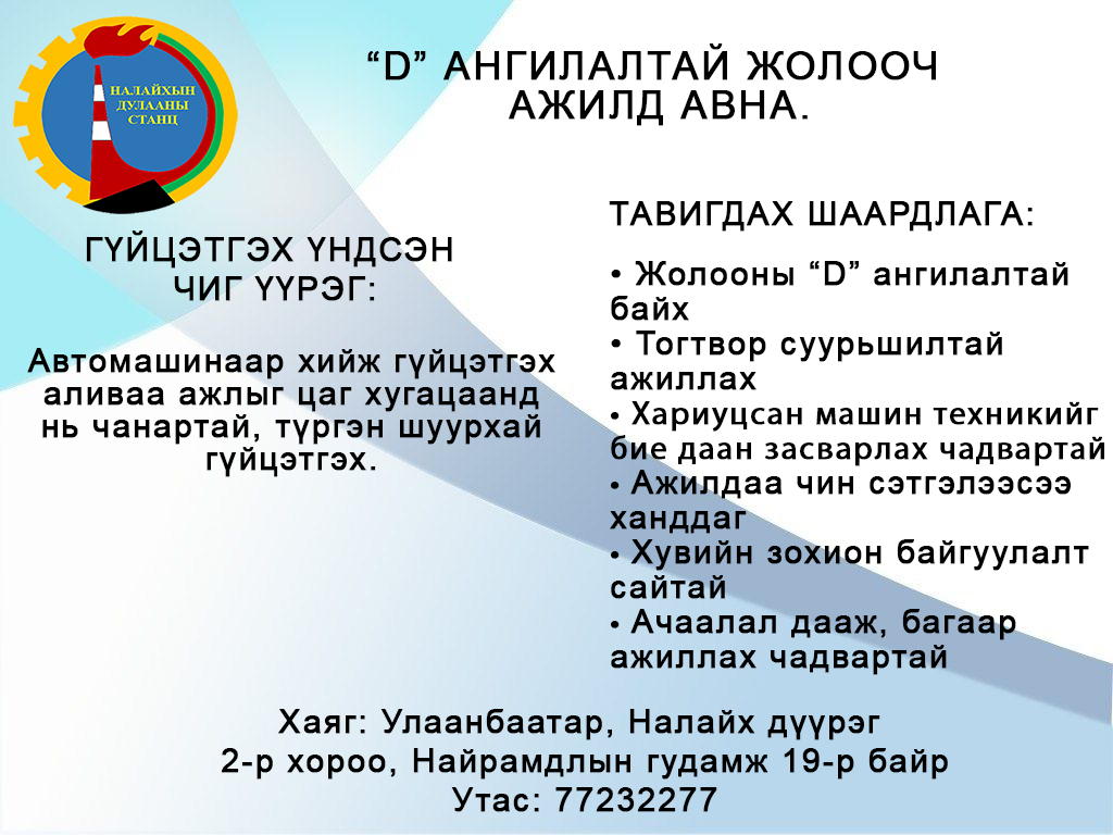 НАЛАЙХЫН ДУЛААНЫ СТАНЦЫН ЗАХИРГАА