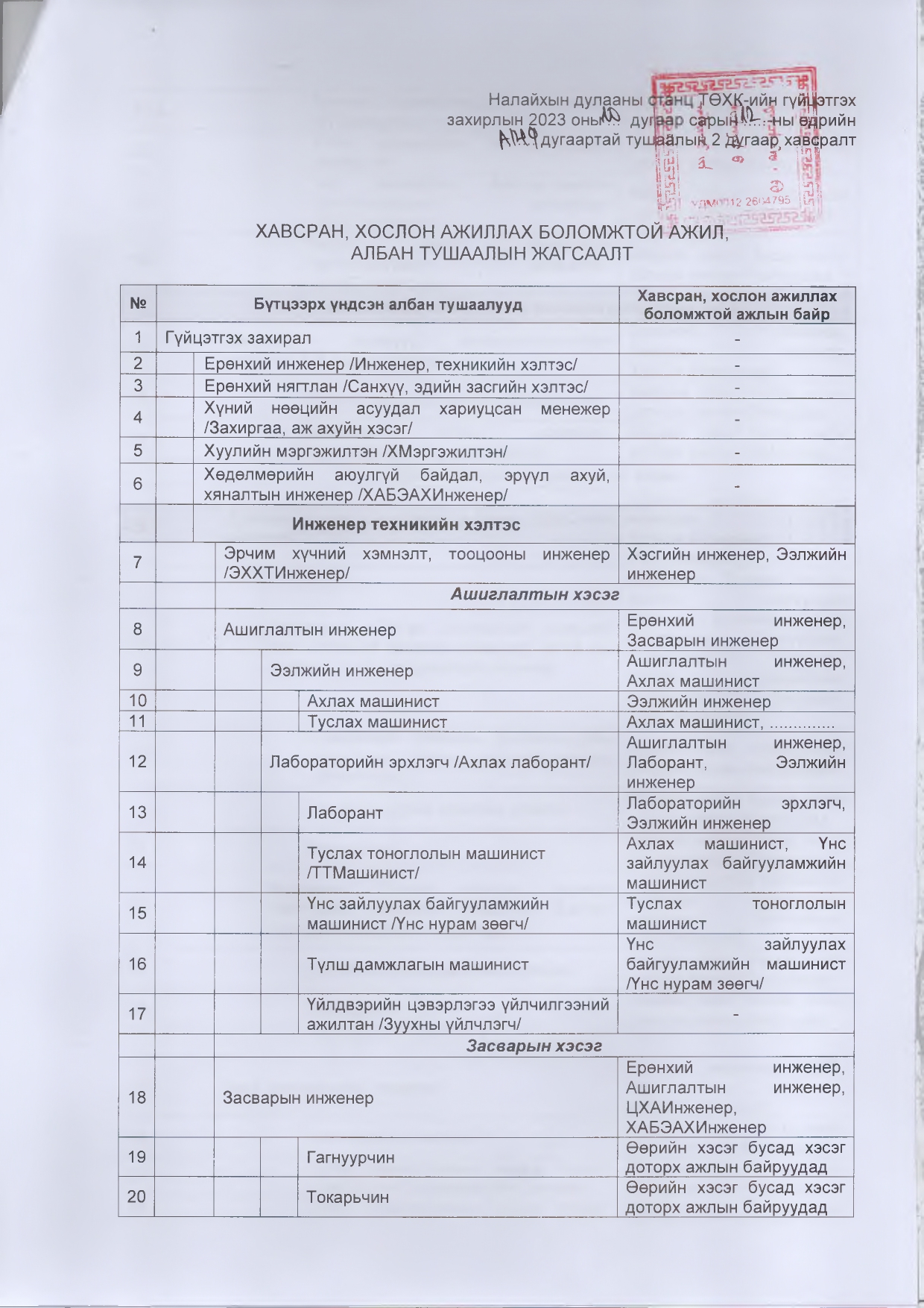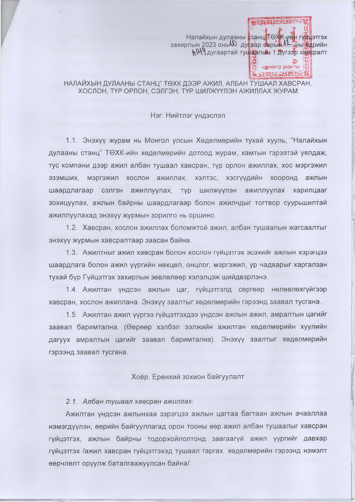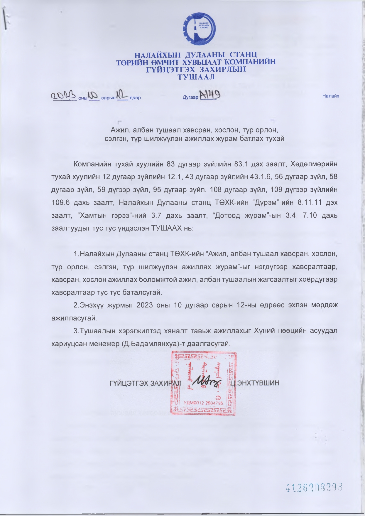 "Налайхын Дулааны станц ТӨХК"-ийн Гүйцэтгэх захирлын цалингийн ил тод байдал.