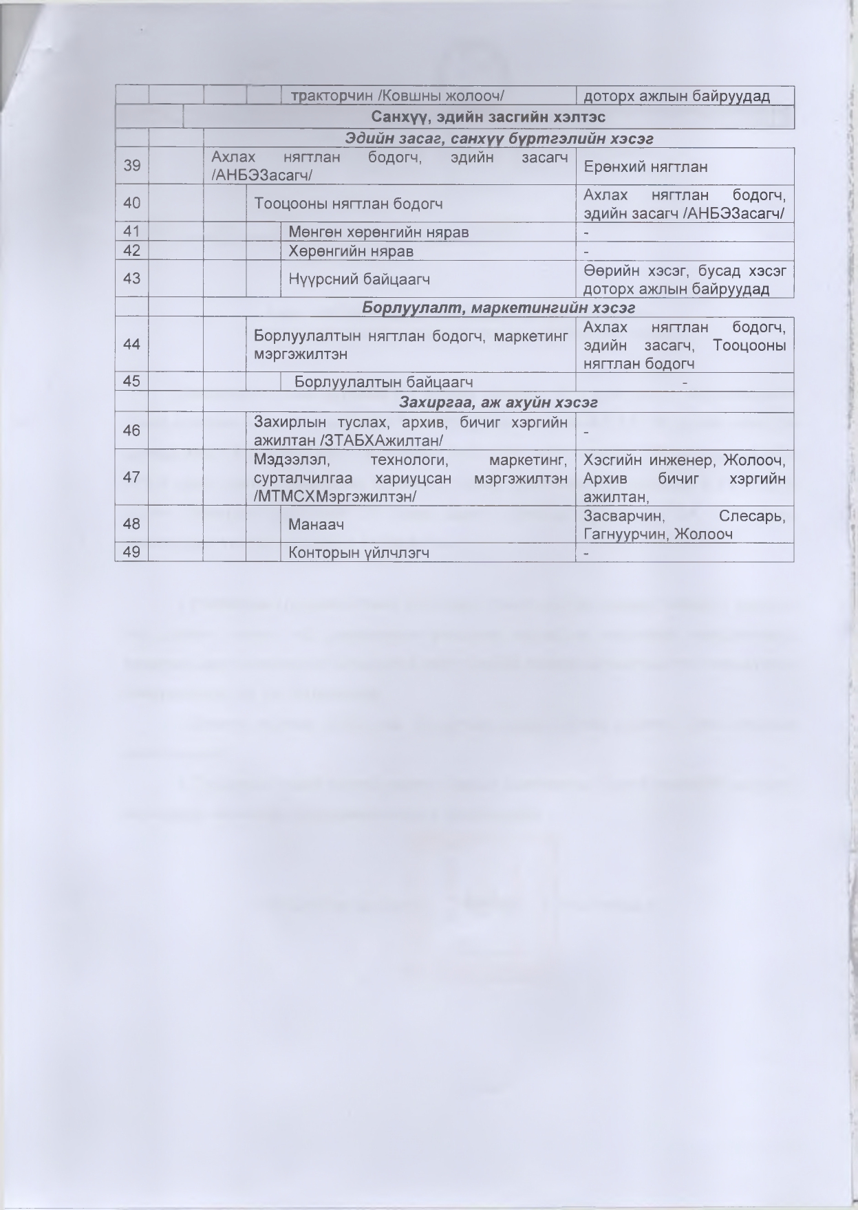 "Налайхын Дулааны станц" ТӨХК ТУЗ-ын дарга, гишүүд
