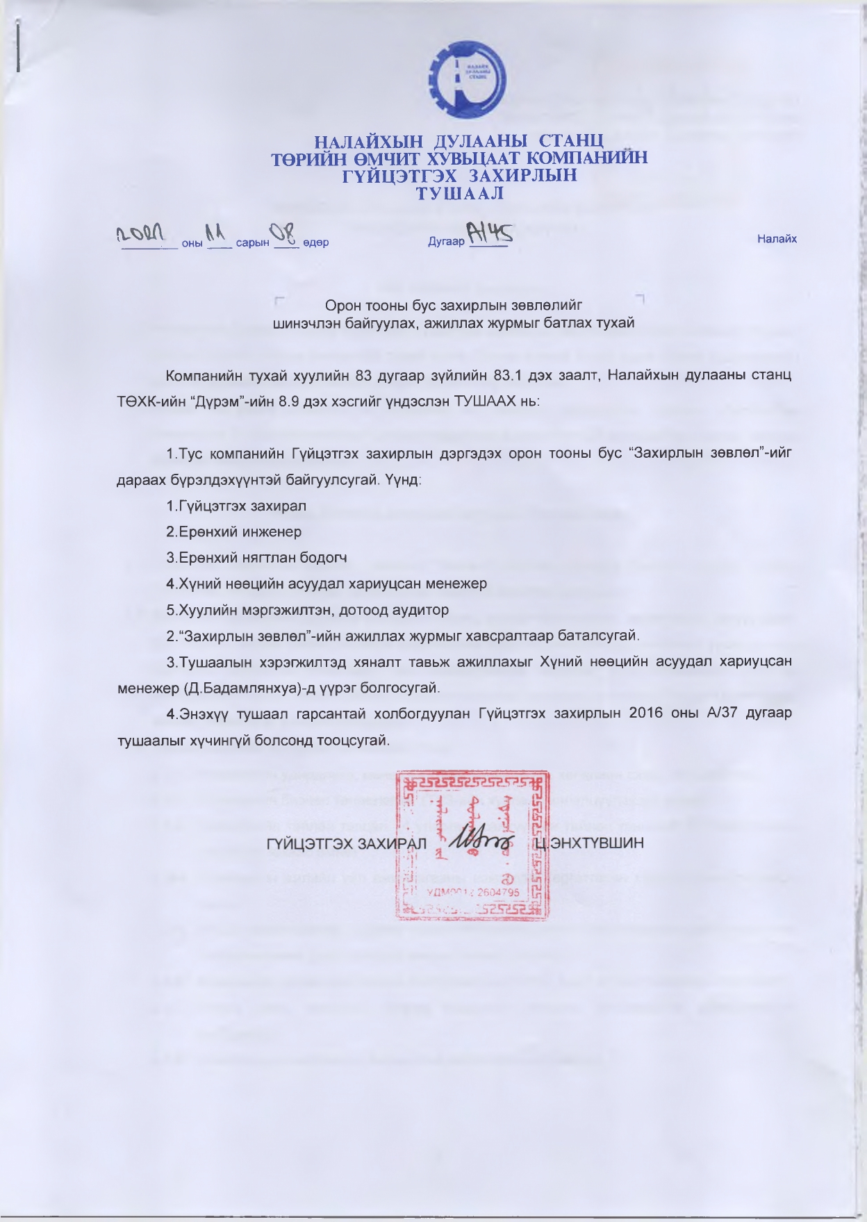"Налайхын Дулааны станц" ТӨХК ТУЗ-ын дарга, гишүүд