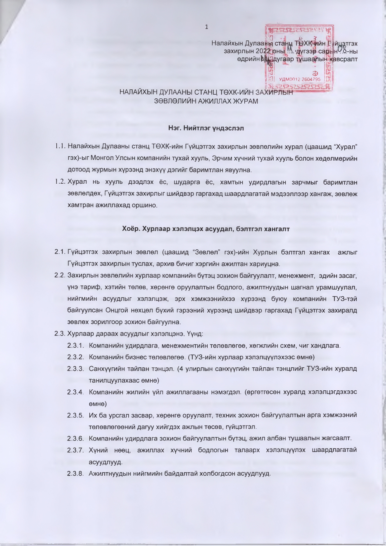 "Налайхын Дулааны станц ТӨХК"-ийн Гүйцэтгэх захирлын цалингийн ил тод байдал.