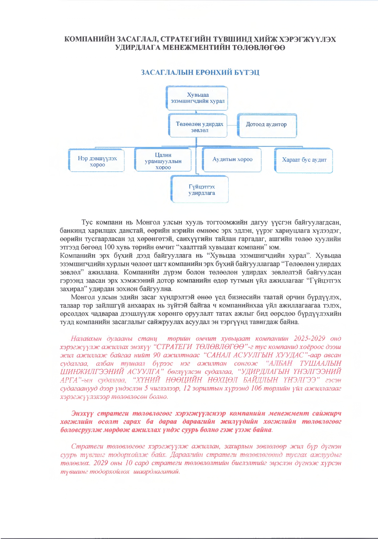 Удирдлага менежментийн төлөвлөгөө 2025-2029