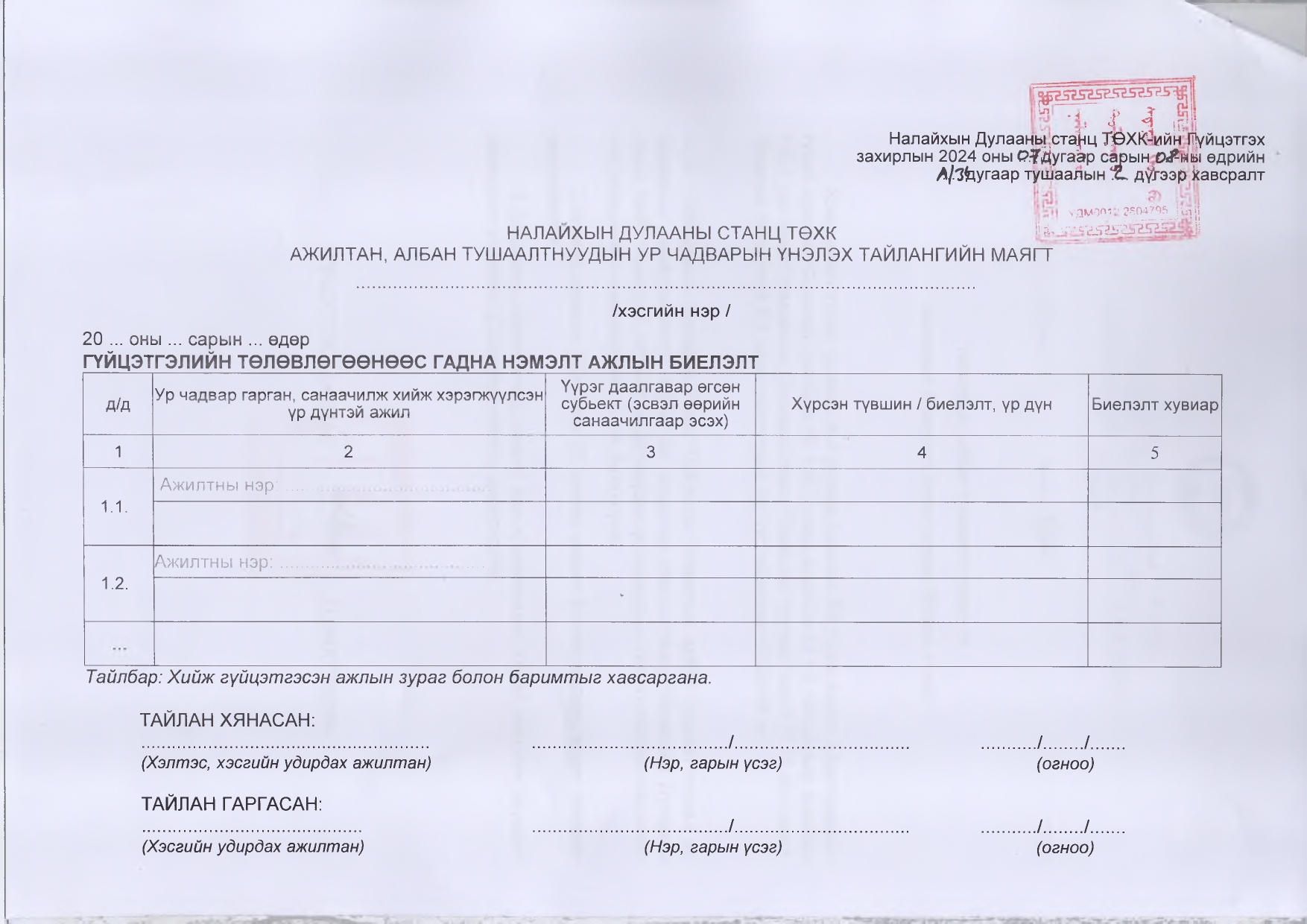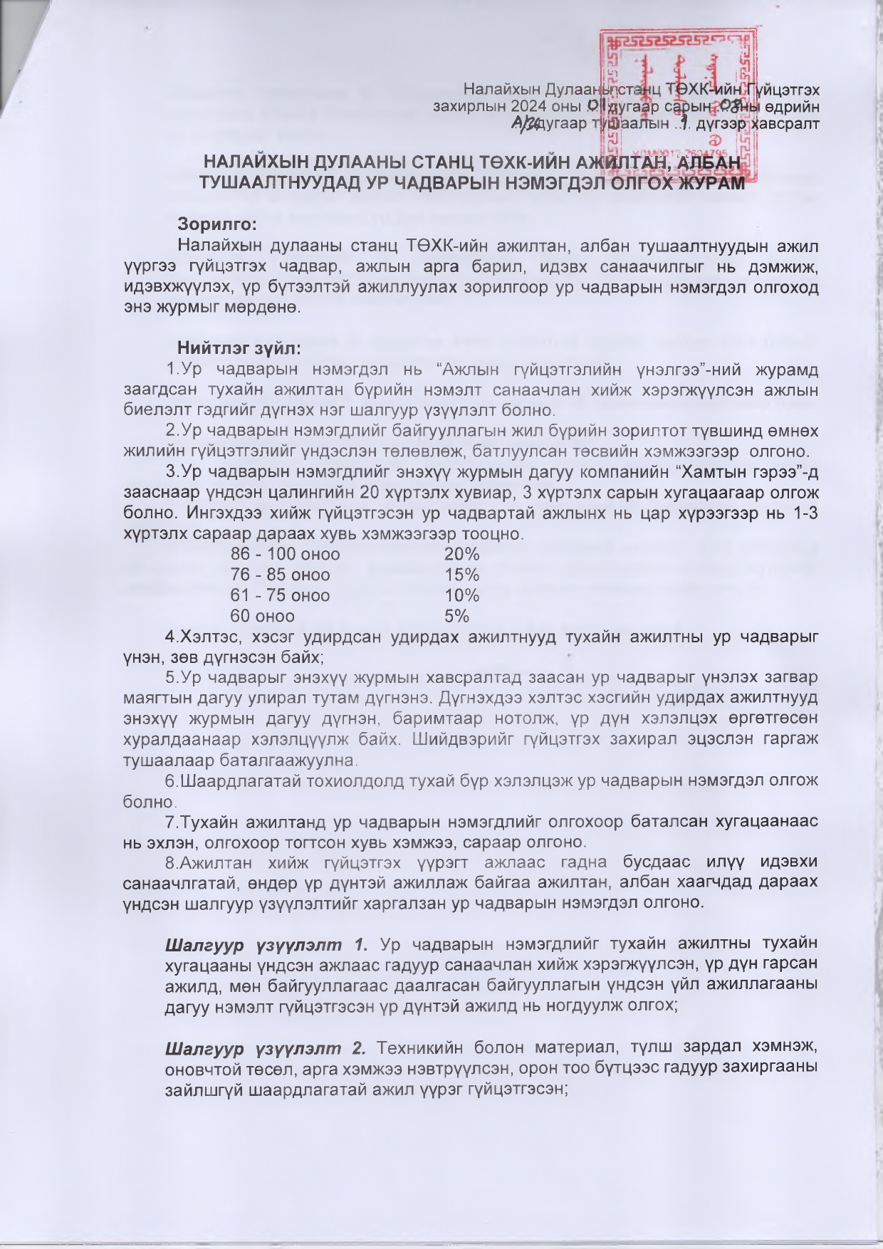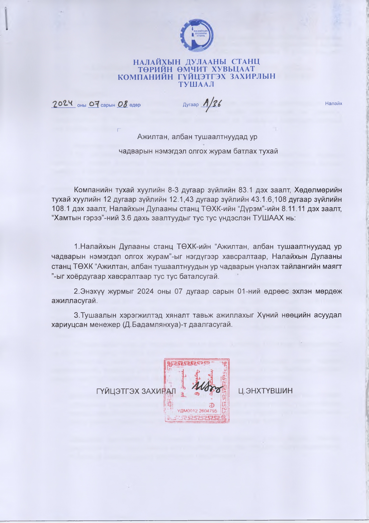 "Налайхын Дулааны станц ТӨХК"-ийн Гүйцэтгэх захирлын цалингийн ил тод байдал.