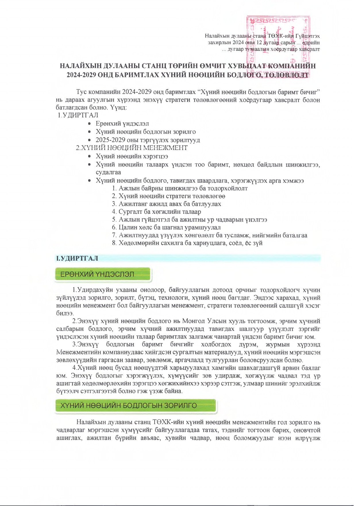 Хүний нөөцийн бодлогын баримт бичиг