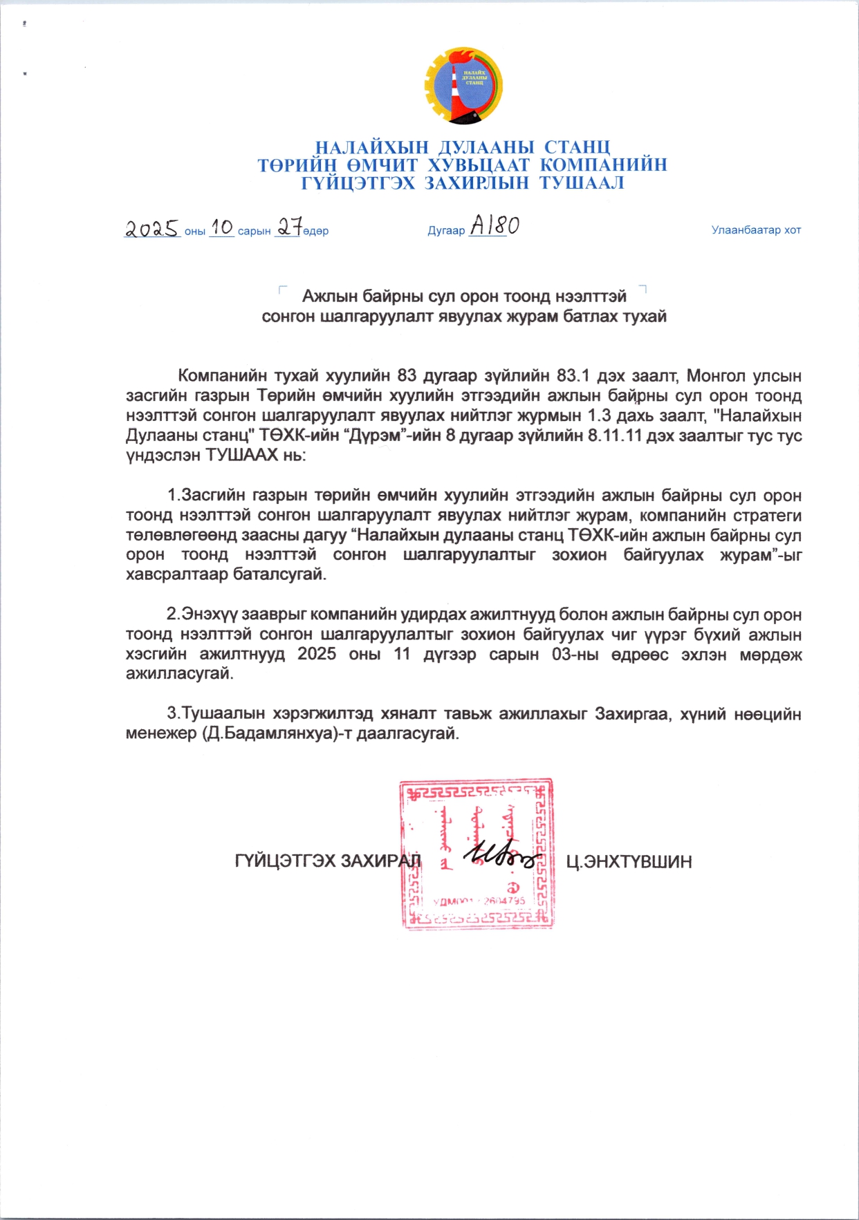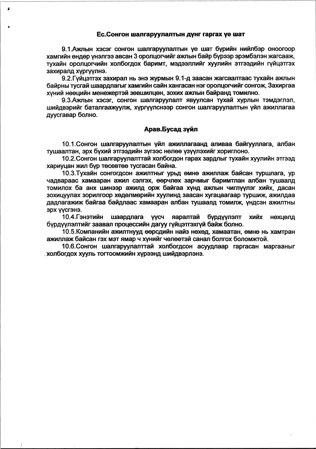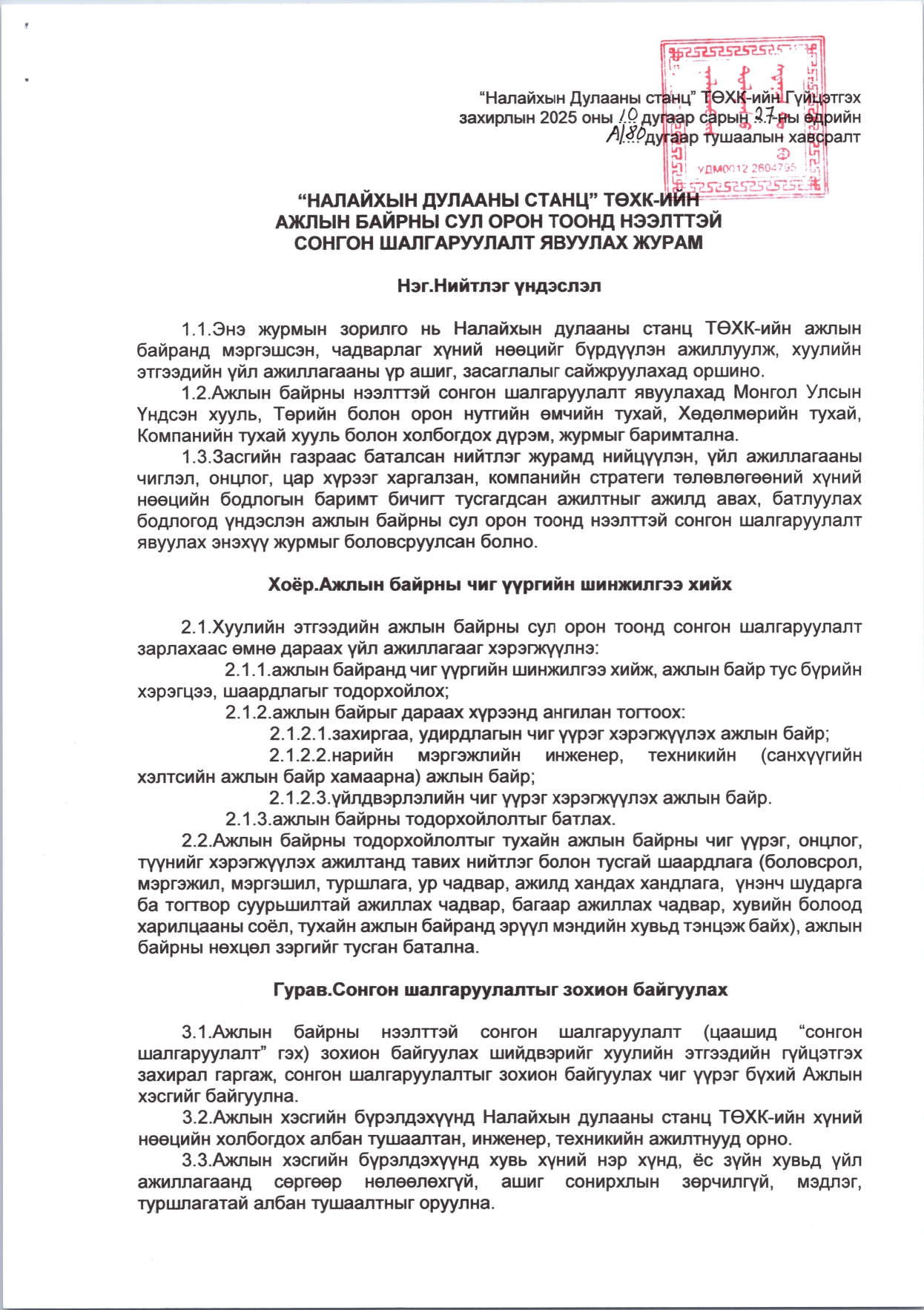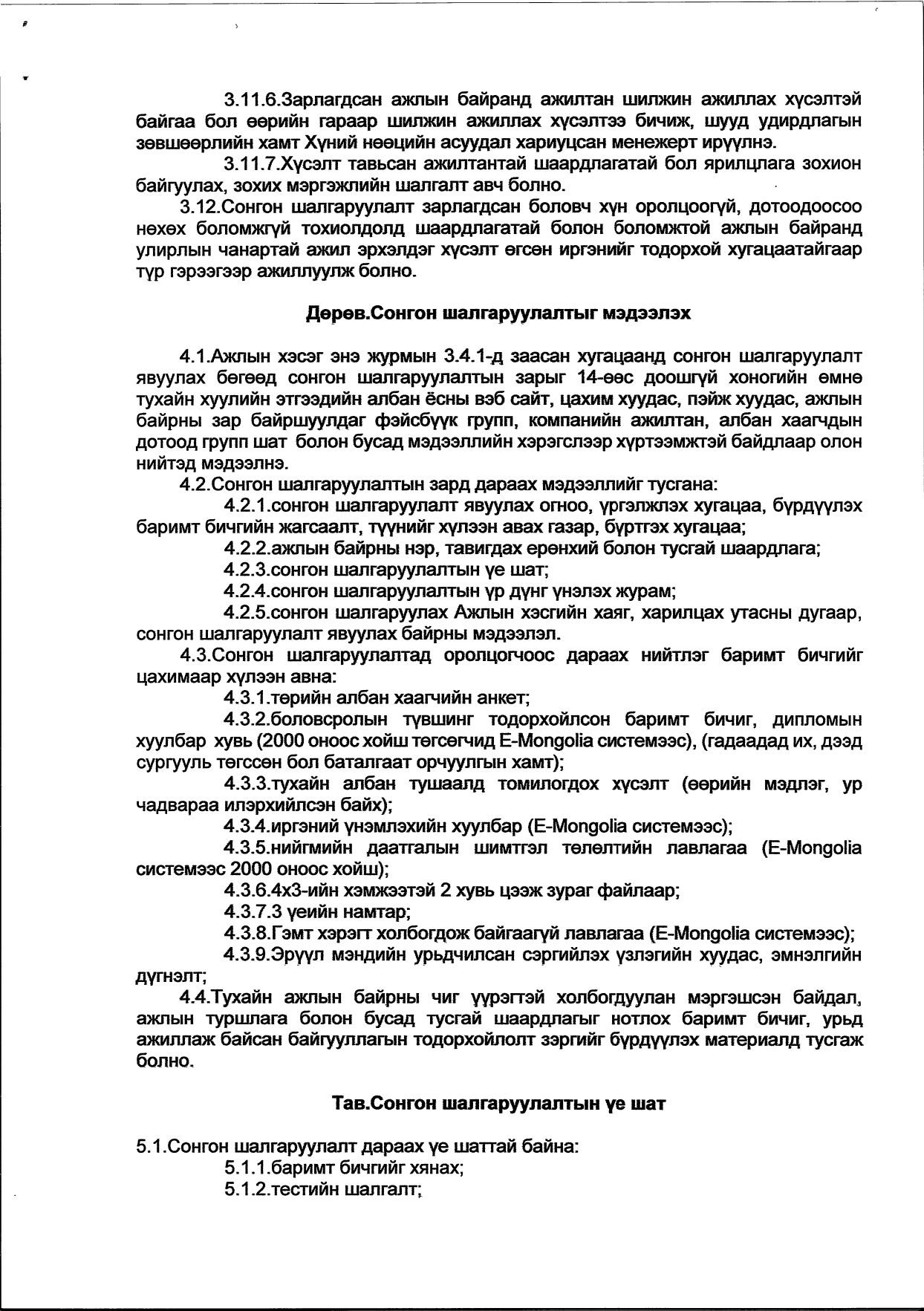 Ажлын байрны сул орон тоонд нээлттэй сонгон шалгаруулалт явуулах журам