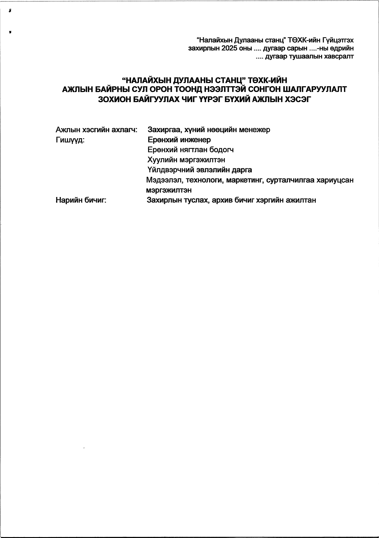 "Налайхын Дулааны станц" ТӨХК ТУЗ-ын дарга, гишүүд